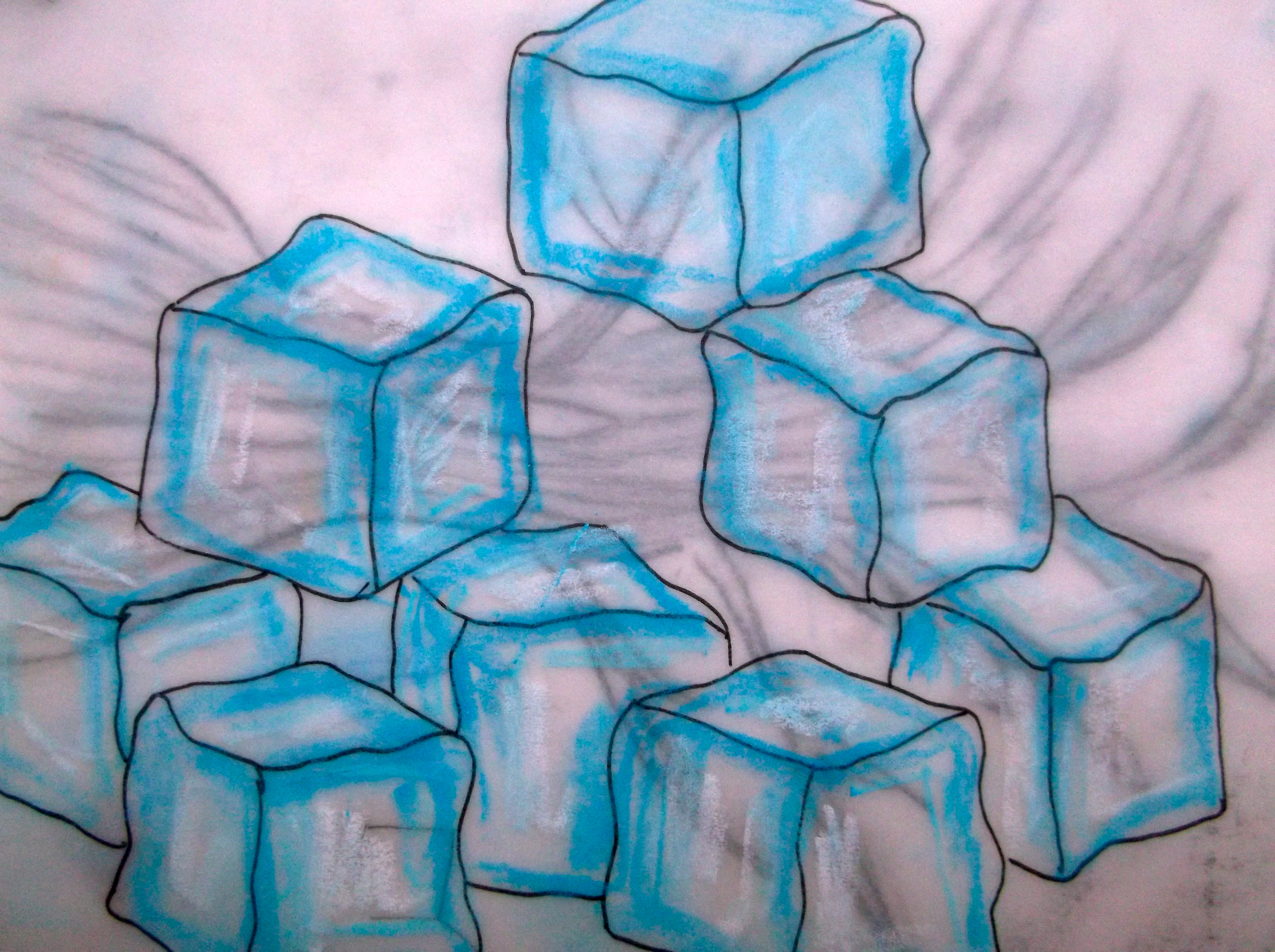I encouraged the use of a variety of different drawing tools including charcoal, pens and felt tips, and this coupled with the variety if papers meant that the ice books were highly individual and each took on its own distinct character