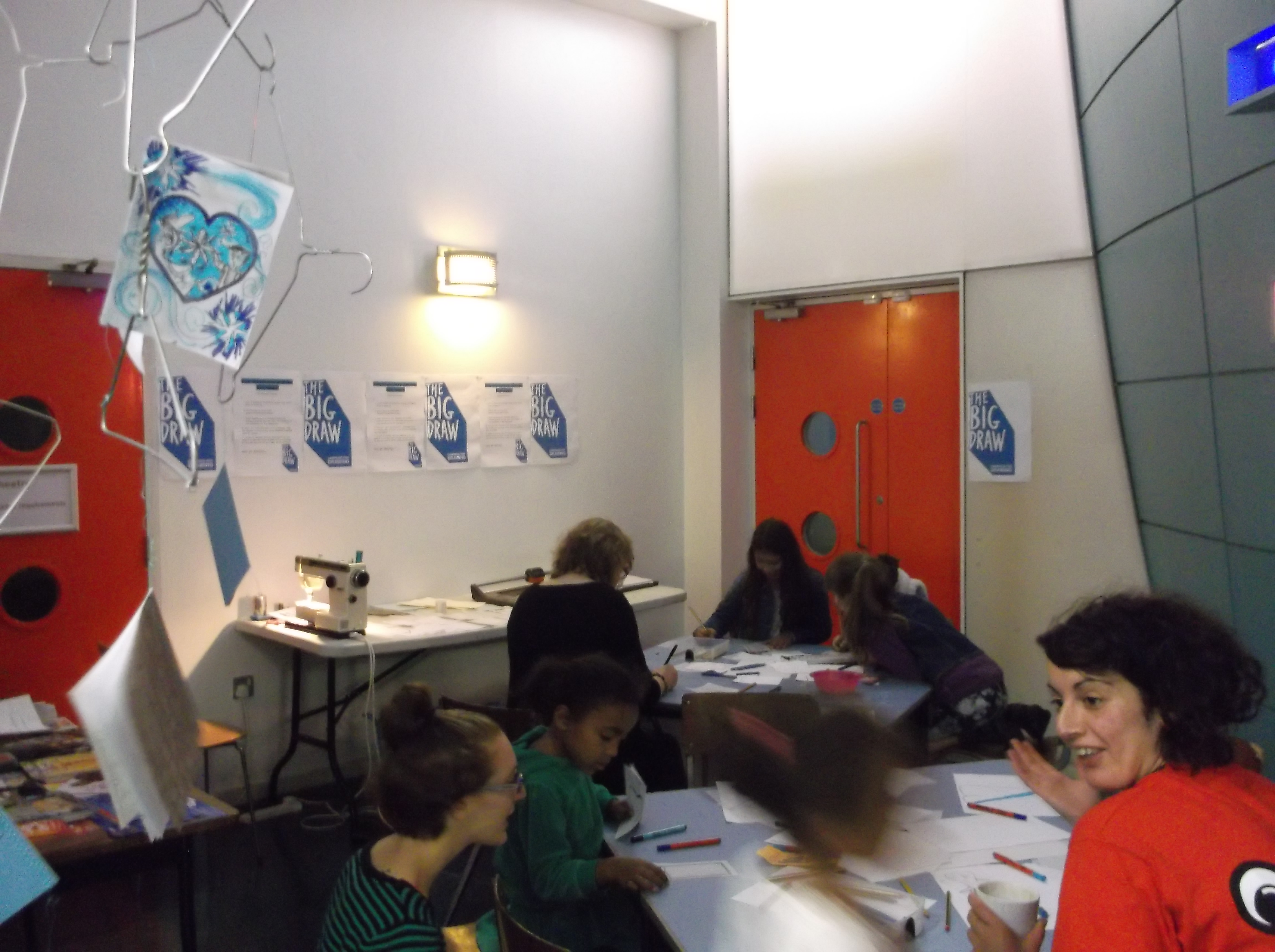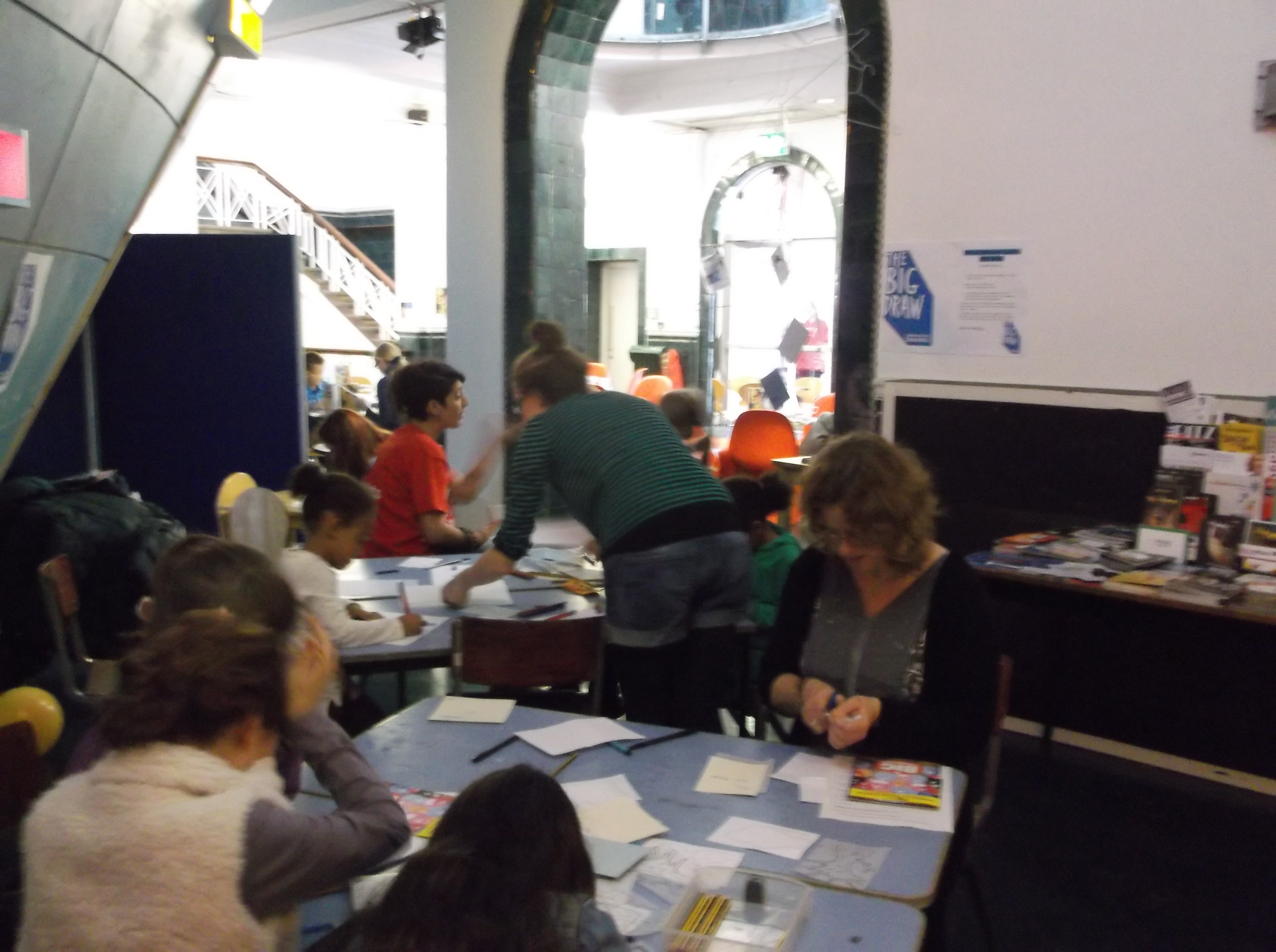 To accompany the miniature theatre show of ‘The Icebook’ (worlds first projection mapped pop up book and part of the Big Imaginations childrens theatre festival) I ran a Big Draw workshop for audience members who had watched the show. The show itself is a magical experience using paper, light and projections. I wanted to reflect the aesthetics of the show and run a fun and engaging workshop for adults and children alike.