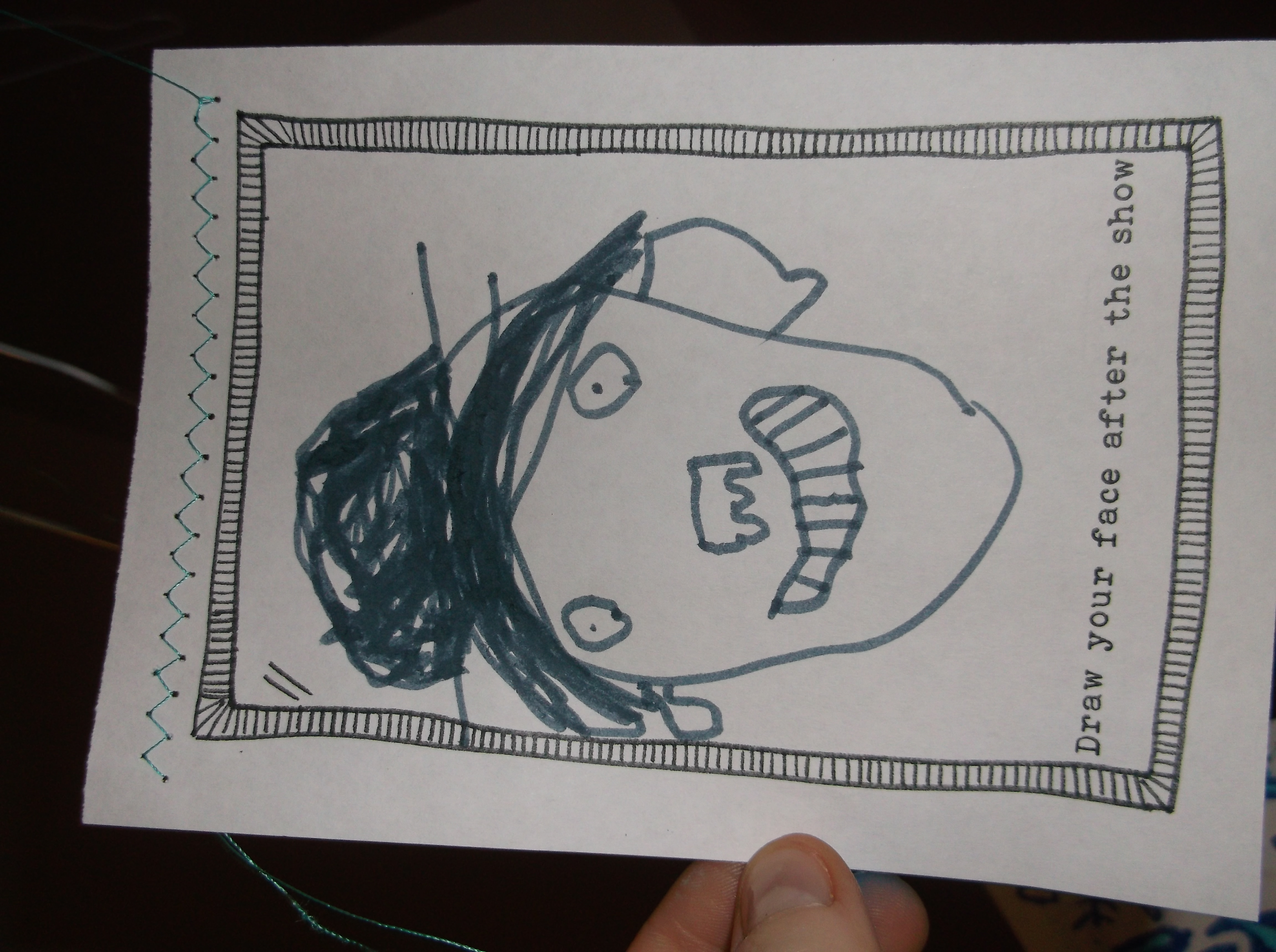 With the drawings themselves, we wanted them to reflect on the themes of the play (fantasy, princesses, discovery and scary woods). Participants could draw what ever they liked in their icebooks or choose from templates or prompt questions and activities. We encouraged memory drawing (always a brilliant and surprising exercise) through asking people to draw what they remembered from the show, or how you may change the ending. The templates and prompt layers also served as visual evaluation material for the show by asking people to draw their face after the show or draw/write 3 words or feelings about the show.