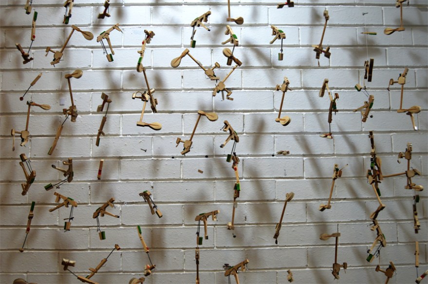 The piano parts were salvaged from a local arts centre who were throwing away this old piano. With instructions to break it up and put it into the skip, the piano was thrown down the stairs. I recorded the sound of this act and thought of all the hundreds of people who would have played this instrument and the different tunes and memories embeddded within its components. I wanted to exhibit the piano and bring musicality back to the objects. Through the rhythmic suspending of the beaters and insides of the piano, the viewer can discern musical patterns and flows. This sound installation was exhibited in the Link Gallery, Manchester Art School.