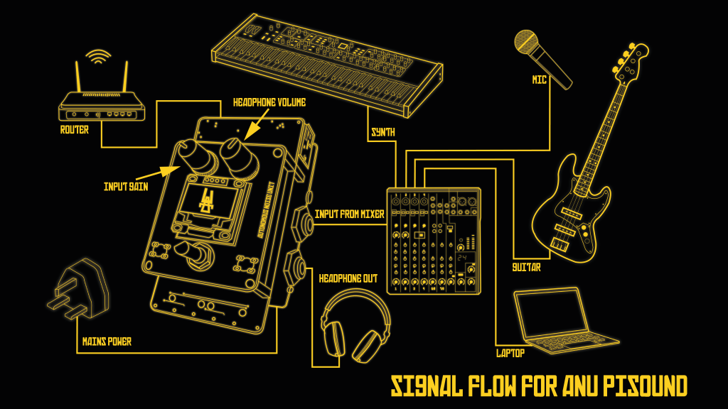 News from Noise Orchestra 2020, we’ve been working on ANU, a new project to develop technology to help musicians play together online. ANU is a hardware unit that runs Jacktrip software on a Raspberry Pi microcontroller, musicians who have an ANU unit can easily patch in with their instrument or mic, find other ANU users and improvise live over the internet via our NOISE SERVER. Think of it like a rehearsal room online.