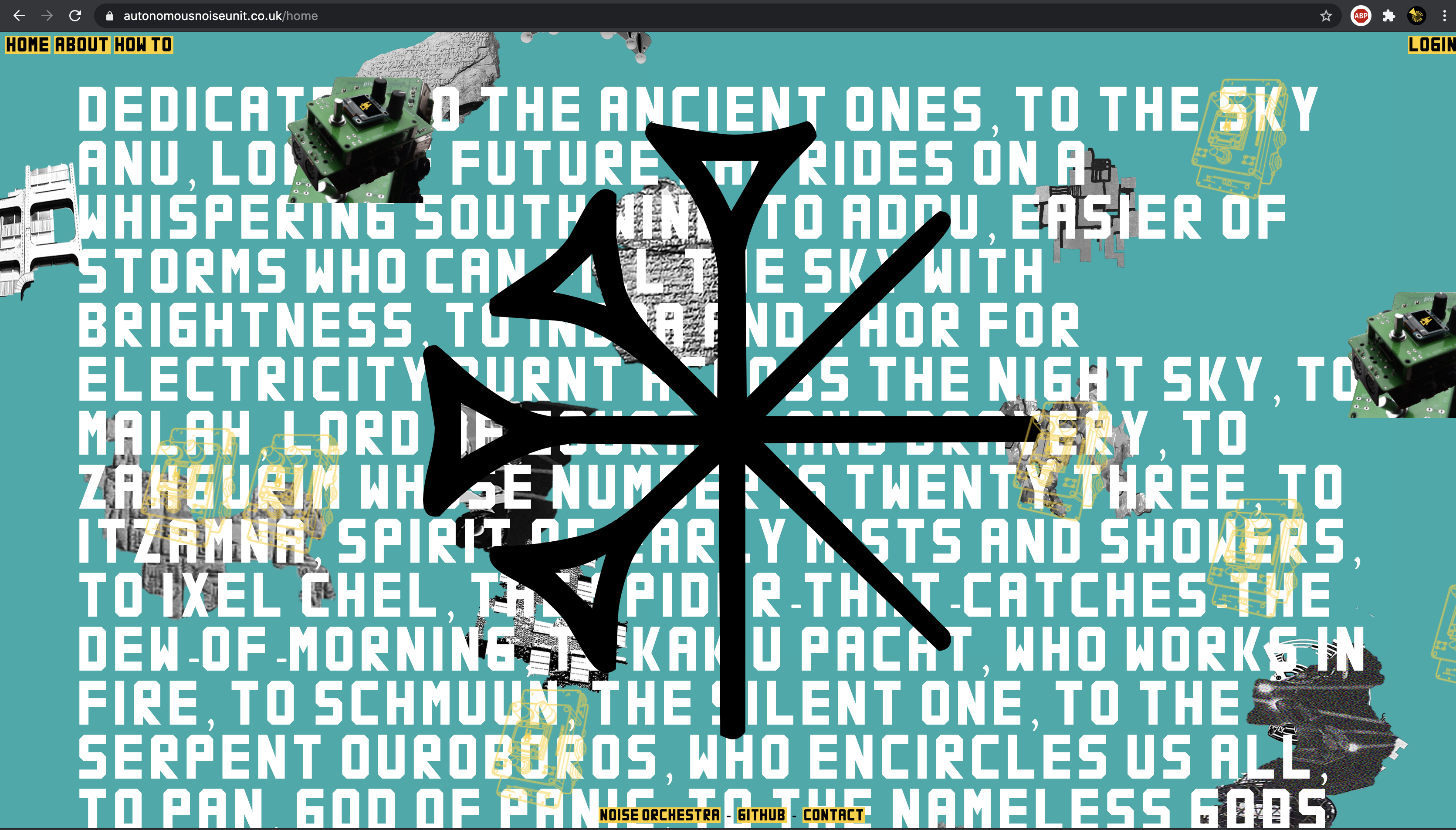 I worked on the visual design for the project, ANU – god of the skies! We wanted to communicate ideas of transmission, summoning up ancient ritual noise fragments and communing with others across the network, Dave created a fantastic narrative for the piece (*remember to click on the ANU logo) and read the scroll.