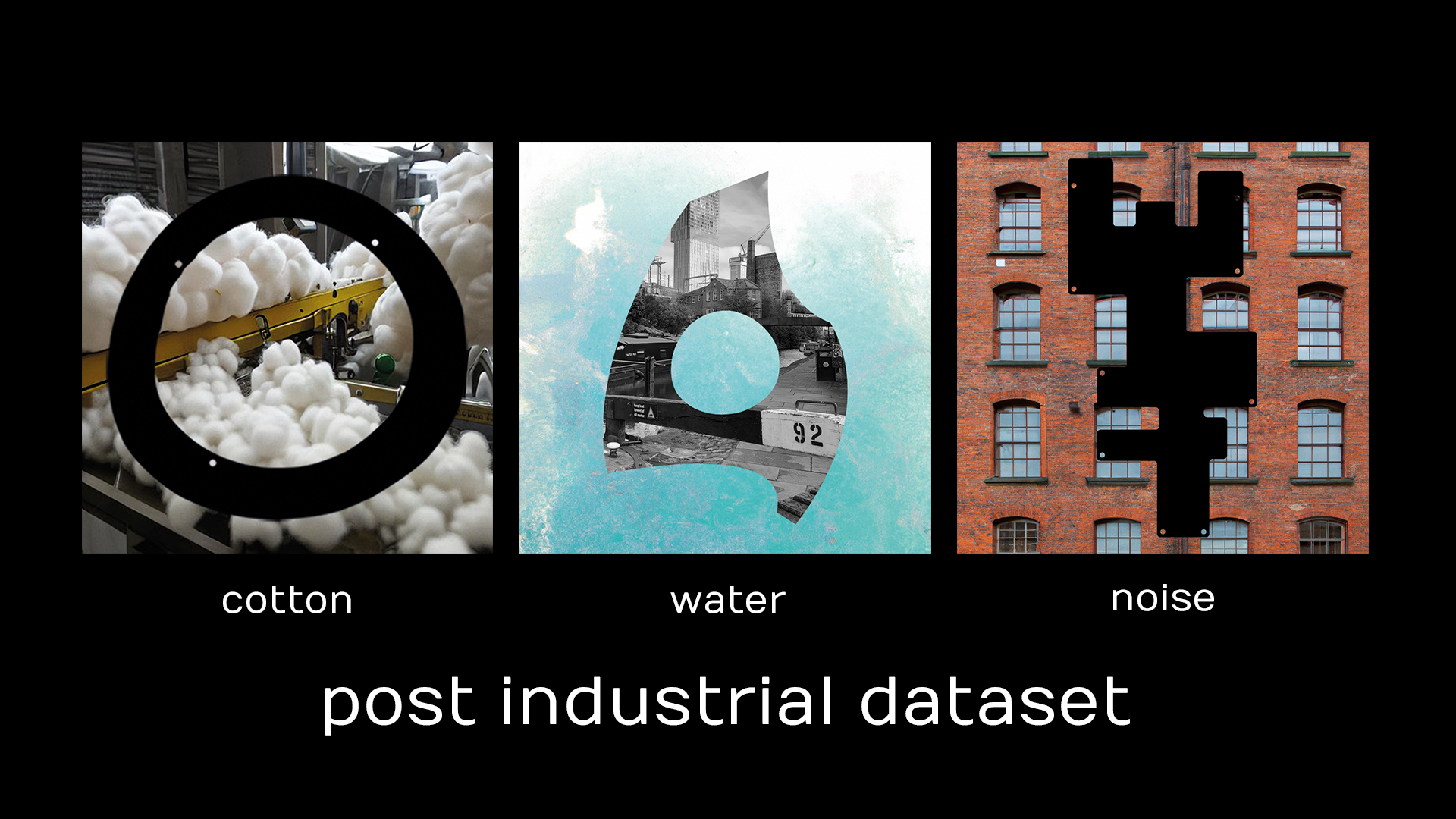 My sonic dataset for this project is ‘post industrial’ with each data class containing field recordings that represent a different material that tells the story of Manchester’s industrial past and present. Beginning on the outskirts of the city with cotton mill machinery at Quarry Bank Mill and journeying inwards towards the centre through the canal networks, we finish in the (property booming) city of luxury mill apartments and the shiny tower blocks of modern development and gentrification. This journey is represented by sonic data classes of cotton, water and noise.