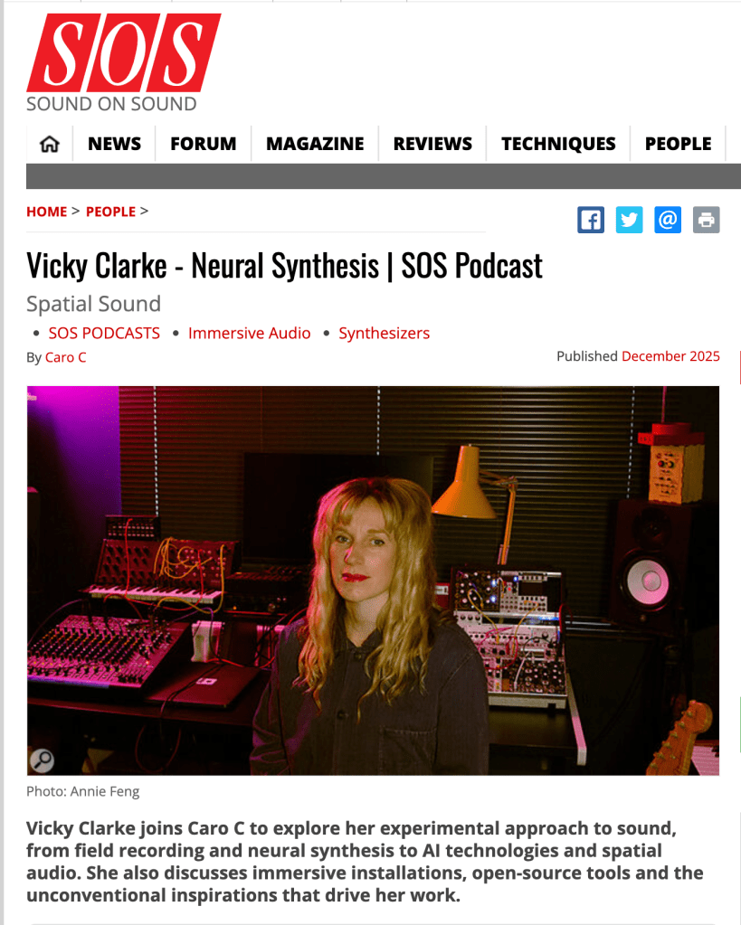 Last December 2025 I was interviewed for the Sound On Sound podcast. I had a wonderful chat with Caro C about my practice covering machine learning and musique concrete, DIY spatial audio and my electronics and composition practice.